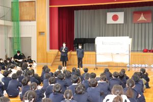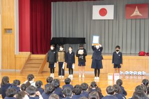 藤田さんのお話の後、「ストップ いじめ標語」の発表です。