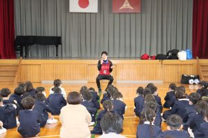 体験の後、池端さんより、ブラインドサッカーを始めたきっかけや苦労などについてのお話を聞きました。