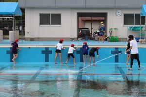 バケツで水を運んでいます。ワッセ、ワッセ・・
