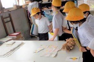 今日は、中島地区内にある「加藤和紙」へ歩いて見学に行きました。