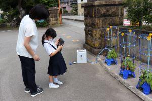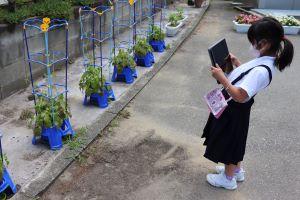 可憐な色と形で、登校してくる子どもたちを迎えてくれています。