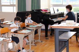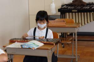 例年は鍵盤ハーモニカを使いますが、コロナ感染防止のため、木琴で行っています。