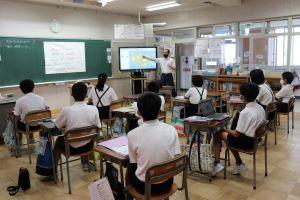 川北中学校のALT(外国語指導助手)のジョシュ先生に来ていただき、日本の行ってみたい場所を紹介しました。