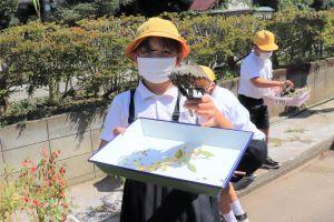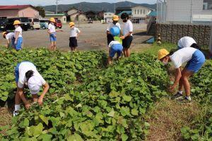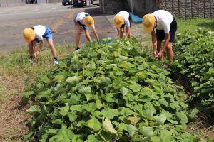 先週から、昼休みに縦割りチームごとに、運動場とさつまいも畑の草むしりを行っています。