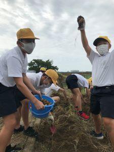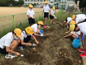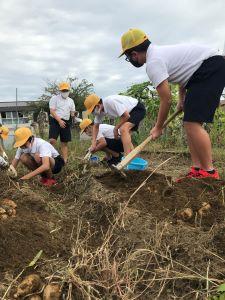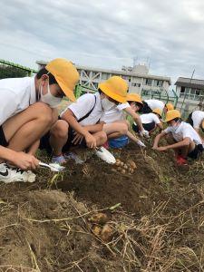6年生が理科の実験用に育てた「じゃがいも」を掘りました。