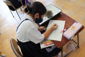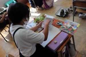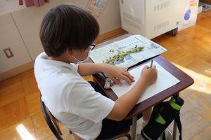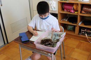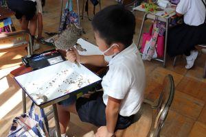 教室に戻り、ワークシートに実物を観察しながら、記録に残しています。