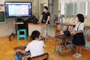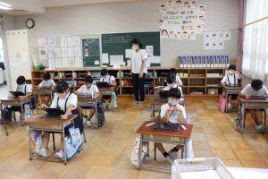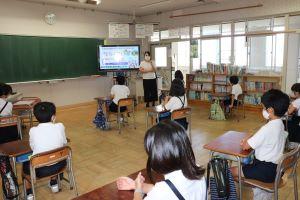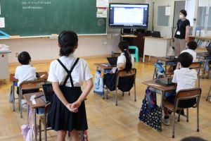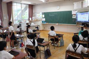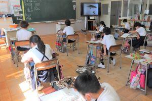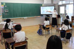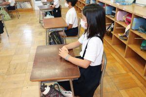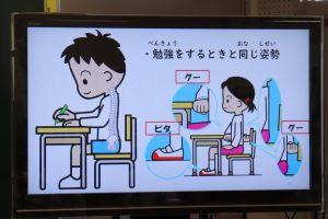 先生の話を聞いて、どの児童も姿勢に気をつけて、すわっています。