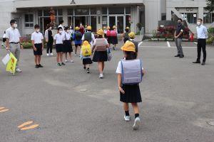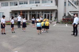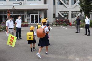 校門近くでは、朝早くから、地域の方や、町の教育委員さん、町民会議推進委員さんが来てくださり、登校してくる子どもたちに挨拶をしてくださいました。