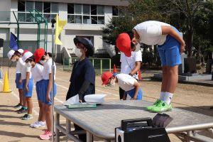 体育委員長が指令台に立ち、お辞儀をしました。