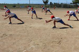 思いっきり体を動かすためにも、しっかり準備体操をします。