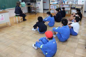 今日は朝学習の時間に、地域の図書ボランティアさんによる全校読み聞かせがありました。
