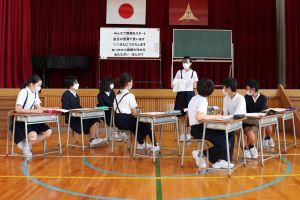 「今日からみなさんも進んで発言して、全員参加で自分たちで進める授業を作っていきましょう!」