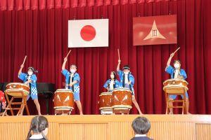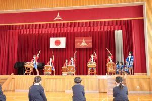 3年生の総合の時間に練習した手取こうりゅう太鼓を演奏しました。