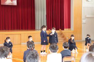明日の「1年生を迎える会」で全校に伝えます。