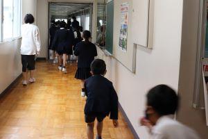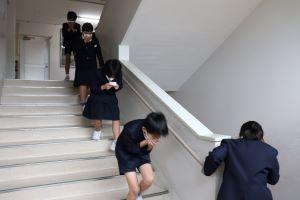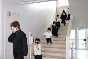 「避難始め!」の放送で、まず、1年生が降りてきました。