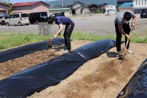 今週は、天気にも恵まれ、無事にマルチかけと苗植えを終了しました。