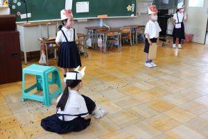 担任の先生によると、1年生が「はなのみち」で学習したことを生かして、自分たちでセリフも動作も考えたそうです。