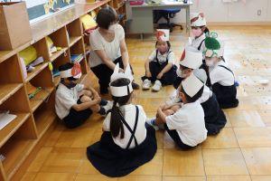 動物のお面は、図工の時間に、それぞれが作ったそうです。