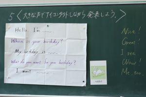 それぞれ、誕生日に欲しい物を「大きな声でアイコンタクトしながら」英語で発表することができました。