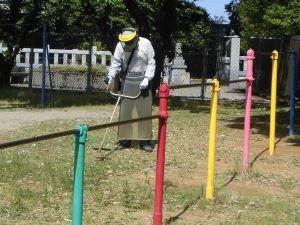 お天気が良く、暑い日になりましたが、朝早くから来ていただき、午前いっぱいかけて、運動場の子供達が遊ぶ遊具周りや、藤棚の周り、樹木園も、きれいにしてくださいました。