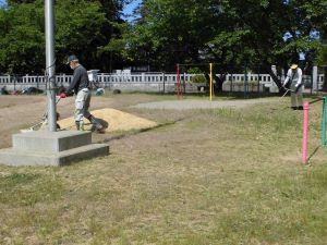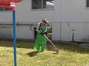 28日土曜日に、中島小学校の草刈りボランティアの、山先さん、吉野さん、森元さん、多賀さんが、運動場の草刈りをしてくださいました。