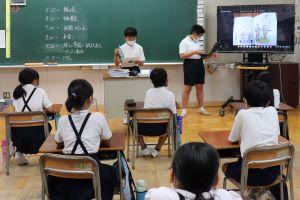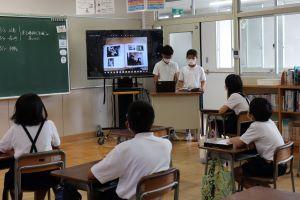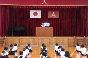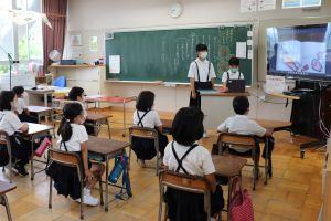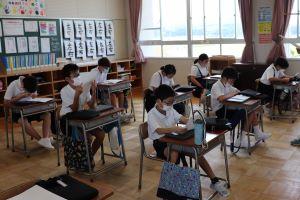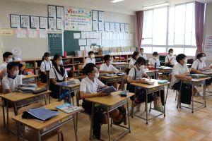 例年は体育館に集まりますが、今年は、熱中症対策と新型コロナ対策のため、各教室で放送を聞きながら行いました。