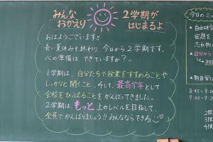 それぞれの学年の教室では、担任の先生から子供達へのメッセージが書かれています。