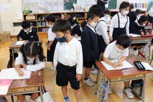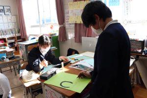 1年生は教室に戻り、2年生の姿から、まねしたいことを発表しています。