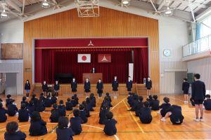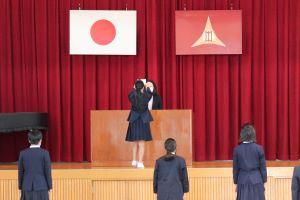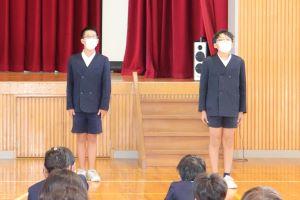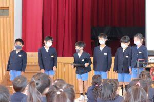 そのあと、各クラスの学級会長、各委員会の委員長が前に並びます。