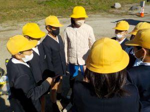 昨日、町内の3つの小学校の5年生が集まり、手取川河川敷で水防学習を行いました。