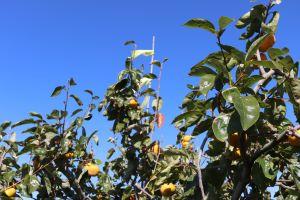 柿の色をよく見て、ちょうどよい熟れ具合のものを探します。