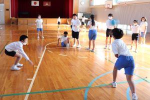 見ている児童の手拍子に合わせ、元気に踊っています。