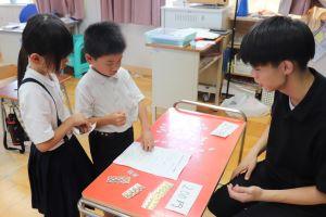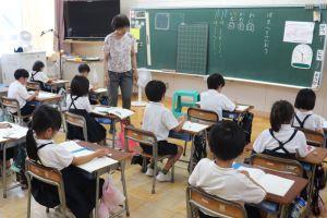 今日、1年生は、「は、を、へをつかおう」という内容で、文を考えてノートに書いていました。基本となる文を正しく作ることは、とても大切です。一生懸命考えていました。