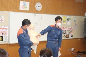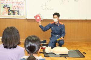 消防から3名の方に講師としてきていただき、心肺蘇生法やAEDの使い方について教えてもらいました。