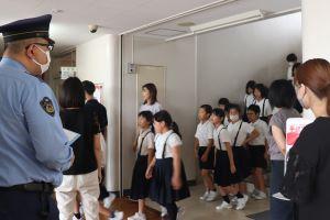 昨日、10時40分、不審者(警察の方)が、職員玄関より入り3階に上がりました。職員室に連絡が入り、すぐ、警察へ連絡し、全校へ教室での待機の放送を流しました。警察の方が、学校に来るまで平均で7.8分。それまで、学校職員で対応しなければなりません。誰に用事なのか、授業中なので校長室へ、などと説得しながら児童から遠ざけます。警察の方が到着し、安全を確認してから、児童は、体育館へ静かに非難しました。