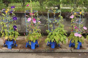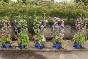 今日の朝、たくさんの朝顔が咲き、とてもきれいでした。思わず写真に撮りました。