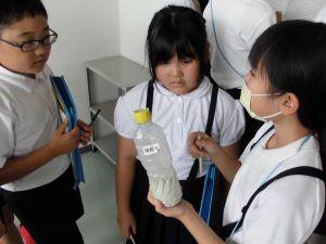 水の中に落とされます。ペットボトルを上手に使えるでしょうか。