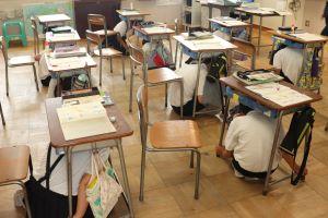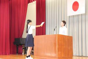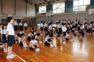 72日間の1学期が今日で終わりました。各教室で朝の会の後、体育館に集まり、1学期終業式を行いました。