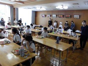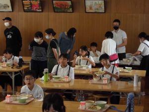 コロナ禍で、ここ数年給食試食会を実施できていませんでした。今年度は、コロナが5類になったことで、6月の学級委員会で給食試食会をどうするか決めてもらいました。子ども達が、普段どのように給食を準備をし、食べているのかやっぱり参観し、試食したいということでしたので、今年度は、1年生から4年生の保護者に希望を取り、実施することになりました。6年生が、修学旅行に行っている間に行いました。