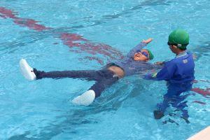 上手に浮くことができました。水に落ちても落ち着いて行動することが大事です。