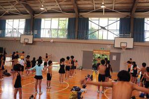 体育館にチームごとに集まり、全員で体操。いつになく集合が速い。