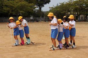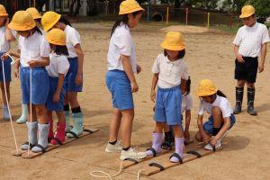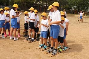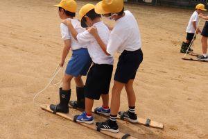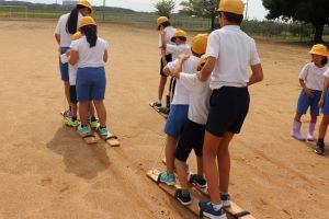 うまく前に進めると楽しいらしく、「せーの。」と声を掛けながら運動場の向こう側まで進んでいました。