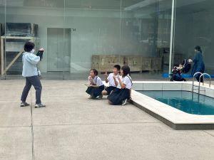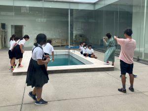 金沢21世紀美術館では、お客さんに声をかけて写真を撮ってもらいます。