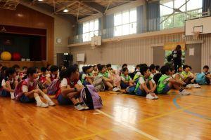 中島小学校は、人数が少ないため、1~4年生一緒でのバス遠足を計画しました。