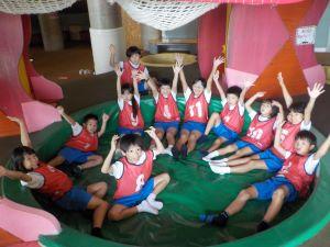 屋内のみの活動でしたが、たくさん遊具で遊び、いろんな体験もできたようで、学校に到着したときは、「楽しかったー。」の声がたくさん聞こえてきました。