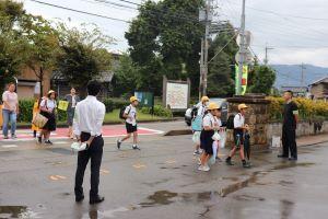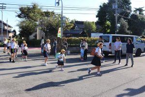 知っている地域の方が校門に立っていることで、笑顔で挨拶している児童も多いように感じました。