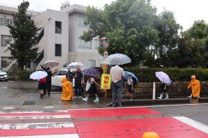 今日は、久しぶりの雨の登校となりましたが、どの集団も遅れず登校できました。