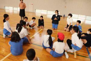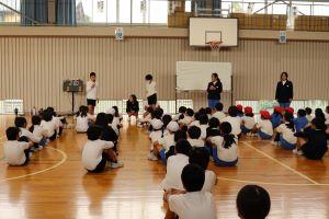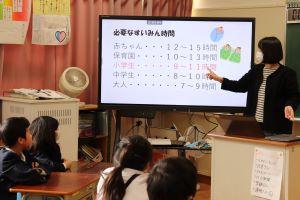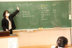 開始前に、養護教諭の西先生が生活リズムの保健指導を行いました。