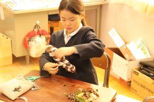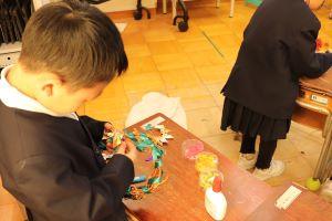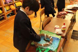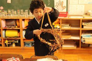 1年生は、あさがおのつるを利用して、リースを作りました。