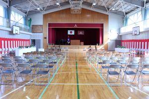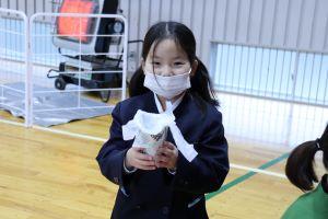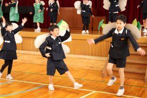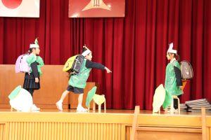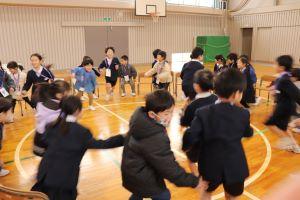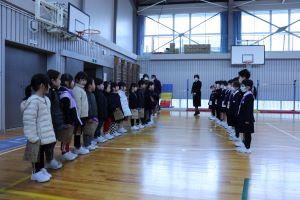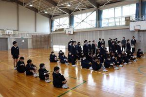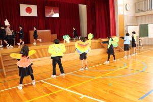 体育館では、保育所の年長さんをお招きして「新1年生をむかえる会」を行いました。